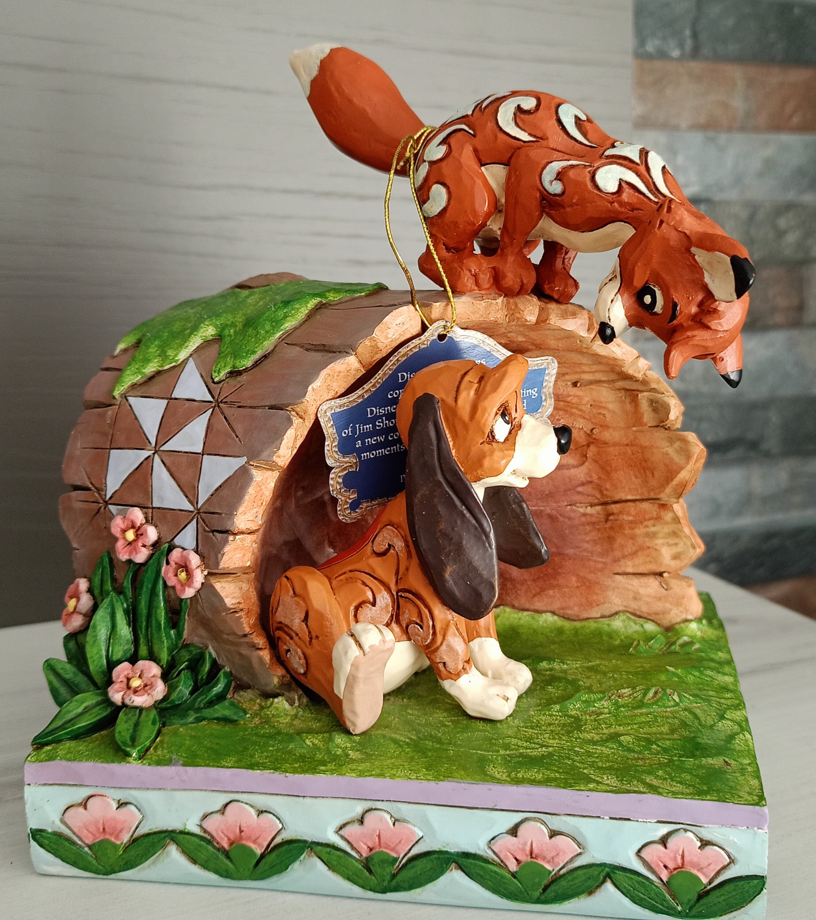 In un bel giorno di primavera, questi inseparabili nemici della natura, Rox la volpe e Rouky il cane, giocano a nascondino. Questo disegno di Disney di Jim Shore raffigura davvero le personalità di questi personaggi.
