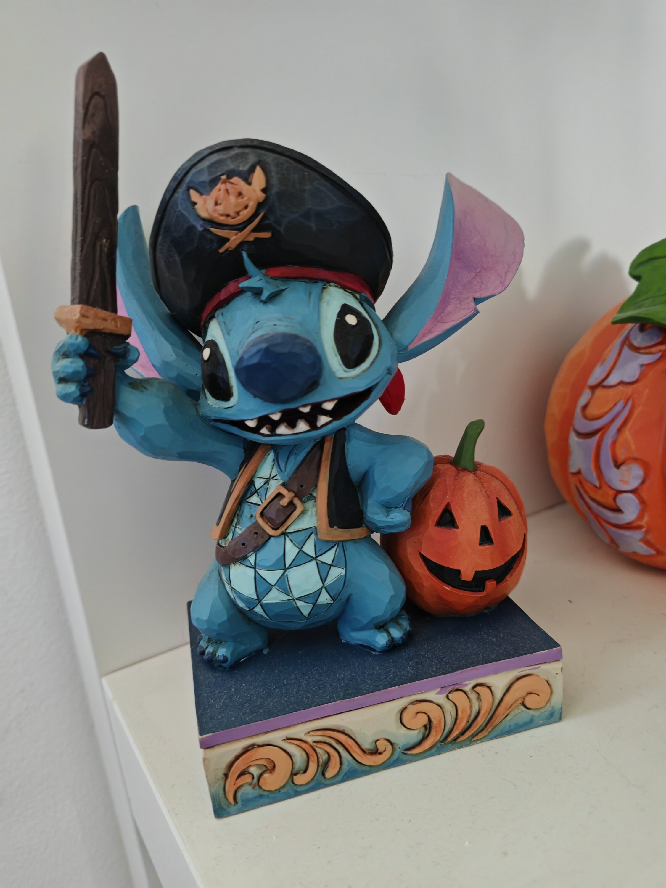Adorable figurine de Stich en mode pirate avec sa citrouille 🎃 d’Halloween. Trop trop mignonne❤️.