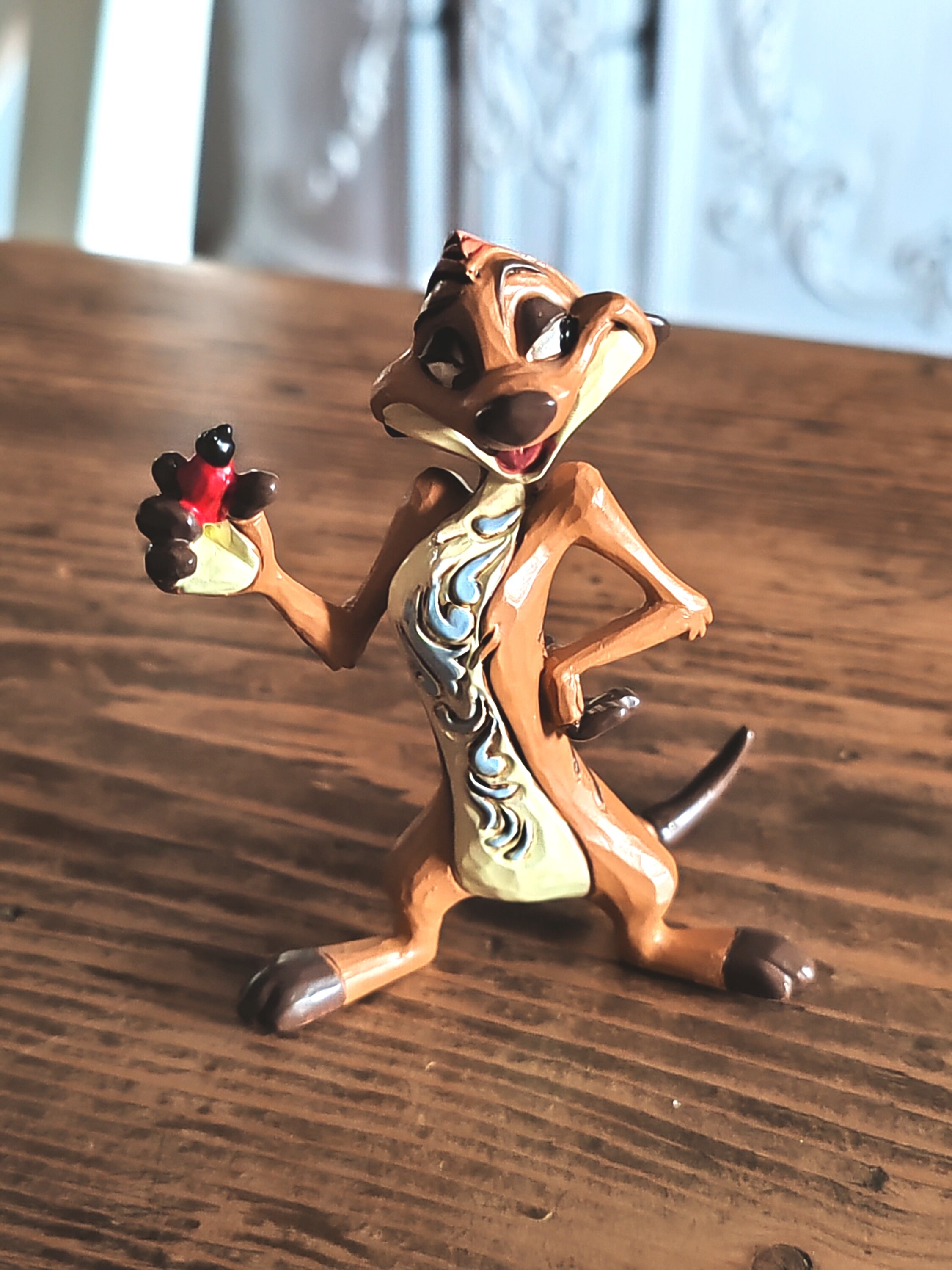 Adoro l'espressione di Timon su questa statuina, è una bella sorpresa.La mia aveva un difetto di vernice sul naso, un grande cerchio non dipinto che ho riempito con un pennarello. Alla fine va meglio