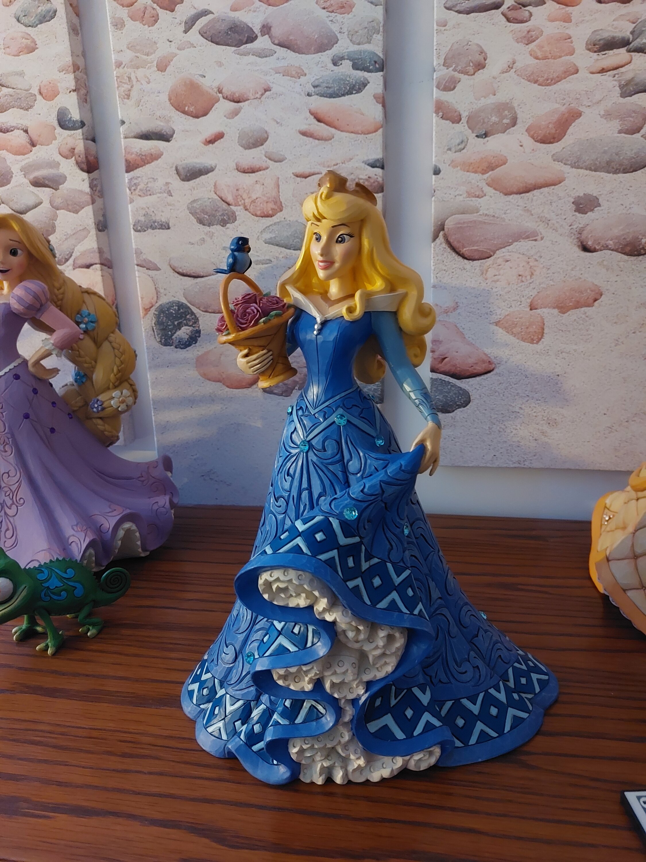 Cette Aurore vient rejoindre ma collection disney et j en suis plus qu heureuse car elle est sublime : très bien finie avec un visage incroyable et sa robe aussi 😍😍🙏💙merci encore Mr Jim Shore 🙏🙏❤🌠